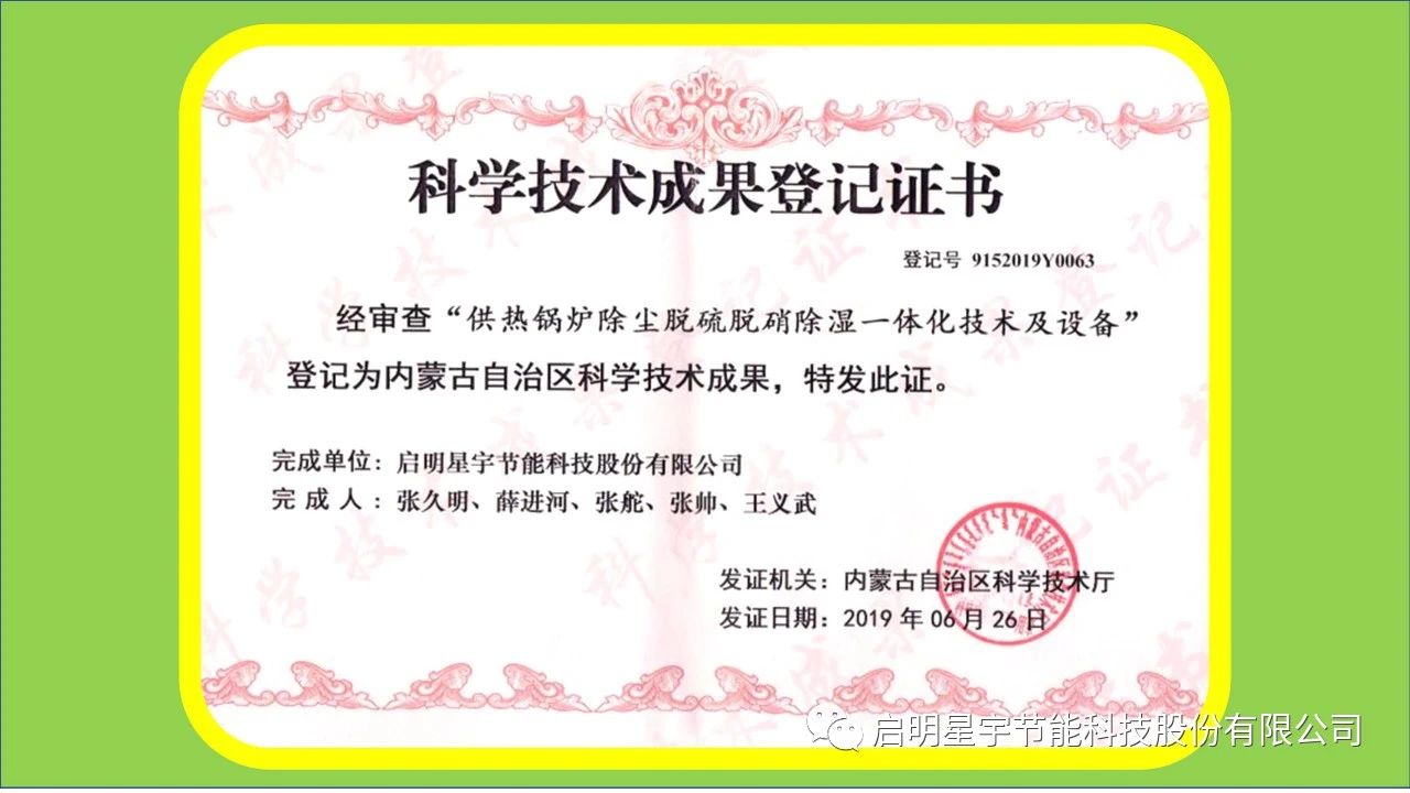 啟明星宇節能科技股份有限公司于2020年在大連正一物業有限公司,安裝兩臺130蒸噸五暖牌脫硫除塵脫硝設備,安全運行3個采暖期,這套設備除塵不用更換布袋,脫硫不用脫硫塔,脫硝不用催化劑。